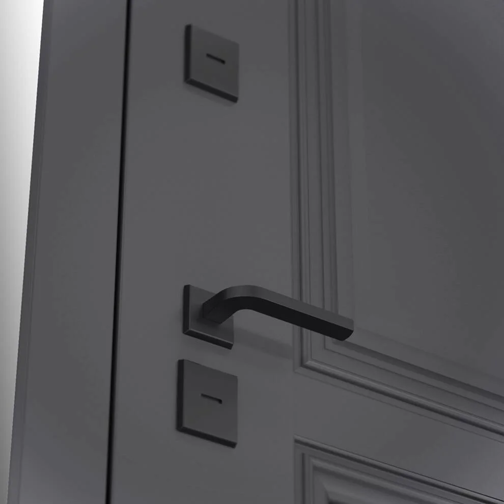 В полный комплект входит черная полимерная фурнитура: накладки со шторкой, удобная дверная ручка, ночная задвижка и металлический эксцентрик с защитой.