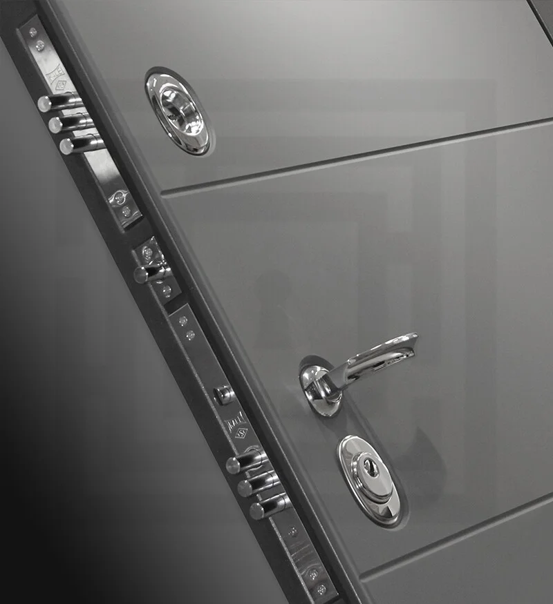 В комплект входной двери входит все необходимое для установки и использования: три скрытые петли на подшипниках, дверная ручка, цилиндр ключ-вертушка, регулируемый эксцентрик, глазок, ночная задвижка, накладки под замки и броненакладка.
