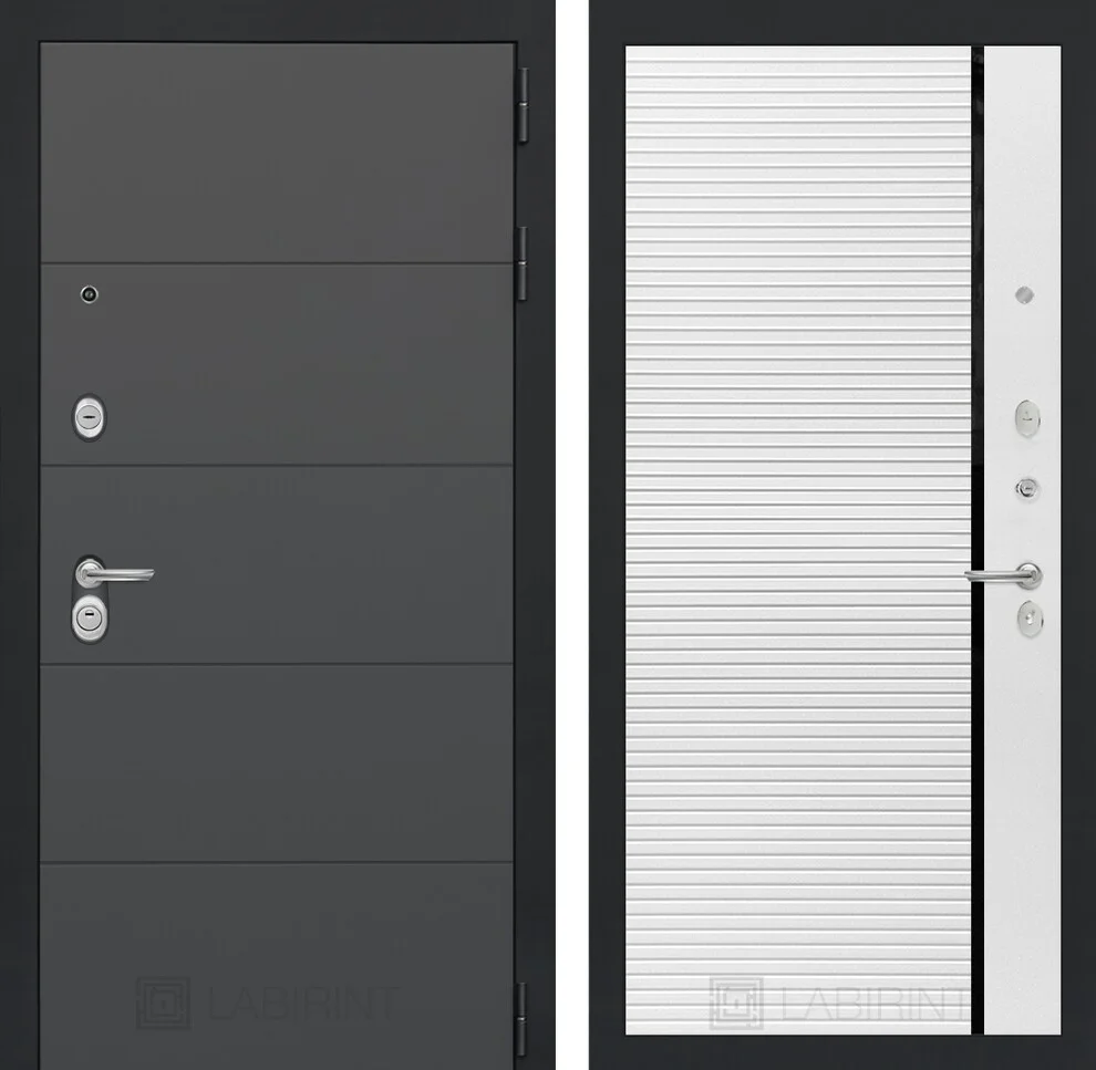 Входная дверь Арт 22 в исполнении "Белый софт, черная вставка" - это надежное решение для защиты вашего дома с премиальным дизайном.