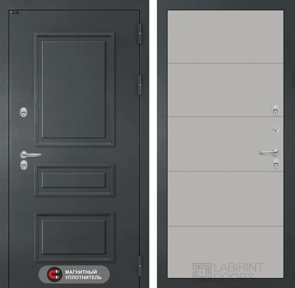 Внутренняя облицовка - МДФ панель 10 мм с фрезеровкой цвета Грей софт придает двери современный вид.