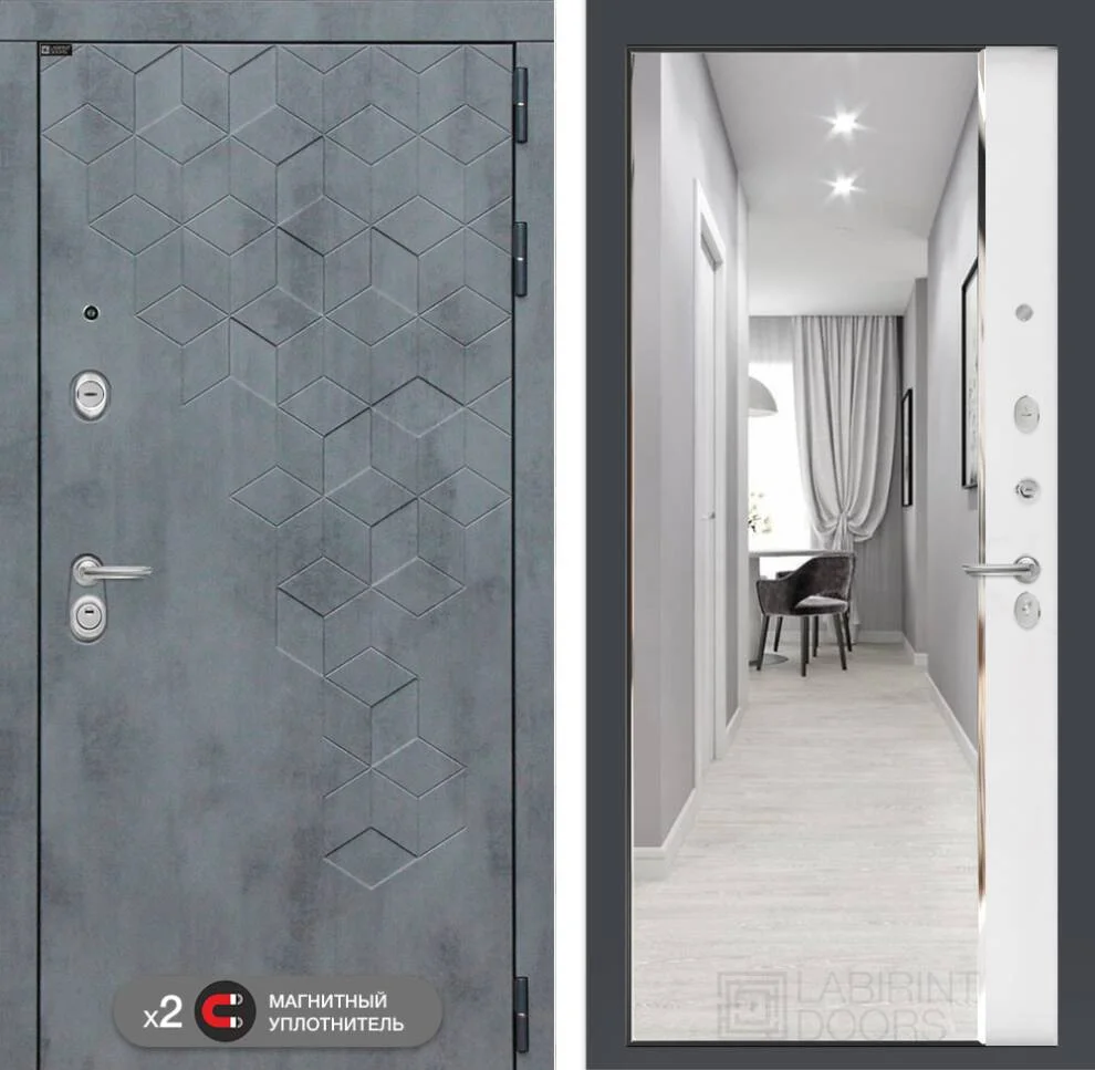 Входная дверь Бетон с зеркалом Панорама в белом софте — это идеальное решение для тех, кто ценит надежность, стиль и функциональность.
