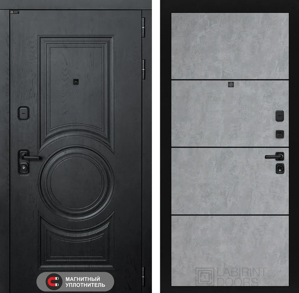 Входная дверь Гранд 25 - Бетон светлый, черный молдинг