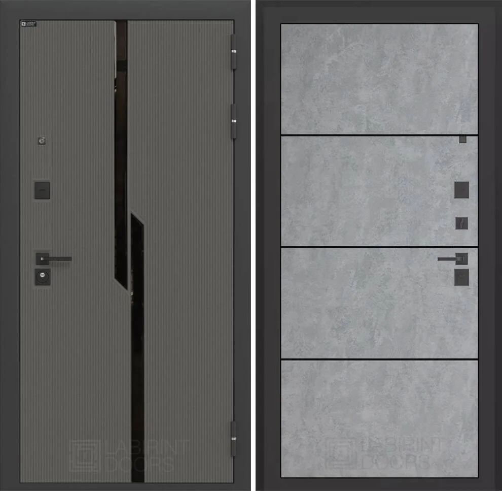 Входная дверь Карбон 25 - Бетон светлый, черная вставка
