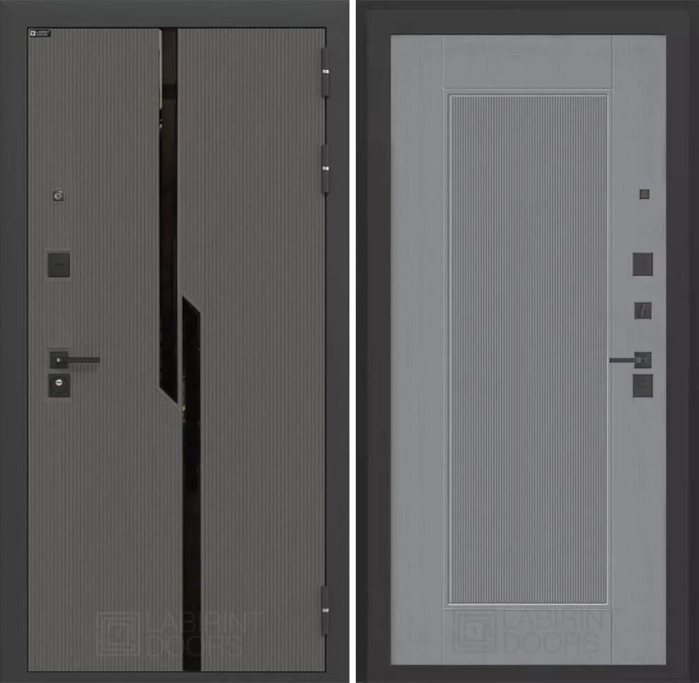 Внутренняя сторона отделана декоративной МДФ панелью с фрезеровкой серого цвета софт рельеф.
