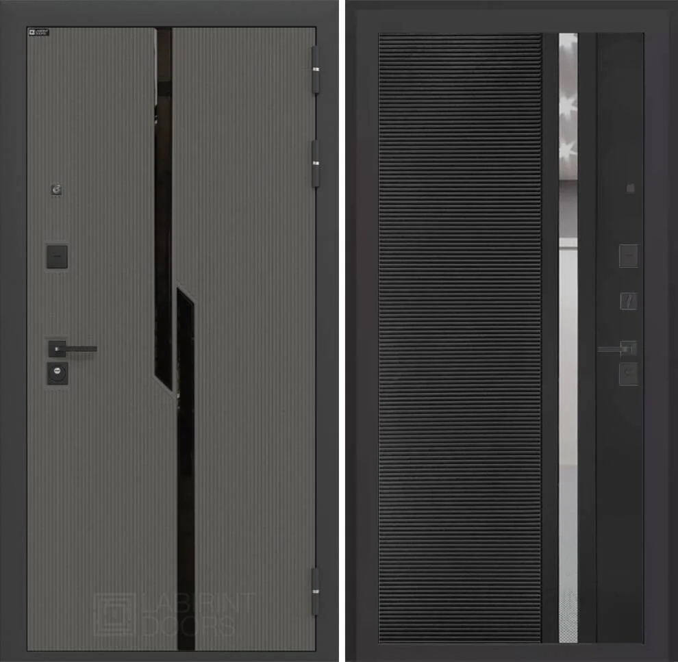 Входная дверь Карбон 31 - Черный кварц, зеркальная вставка с тонировкой