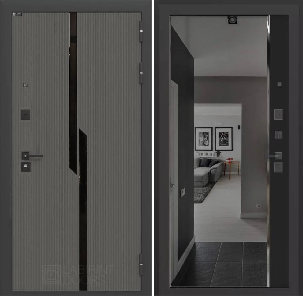 Входная дверь Карбон с зеркалом Панорама с тонировкой в цвете Черный кварц — надежное решение для защиты вашего дома.