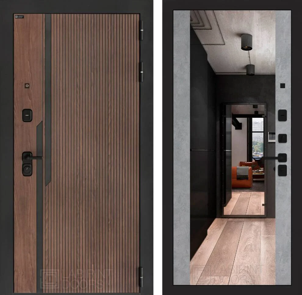 Входная дверь Кармина с Зеркалом Максимум - Бетон светлый