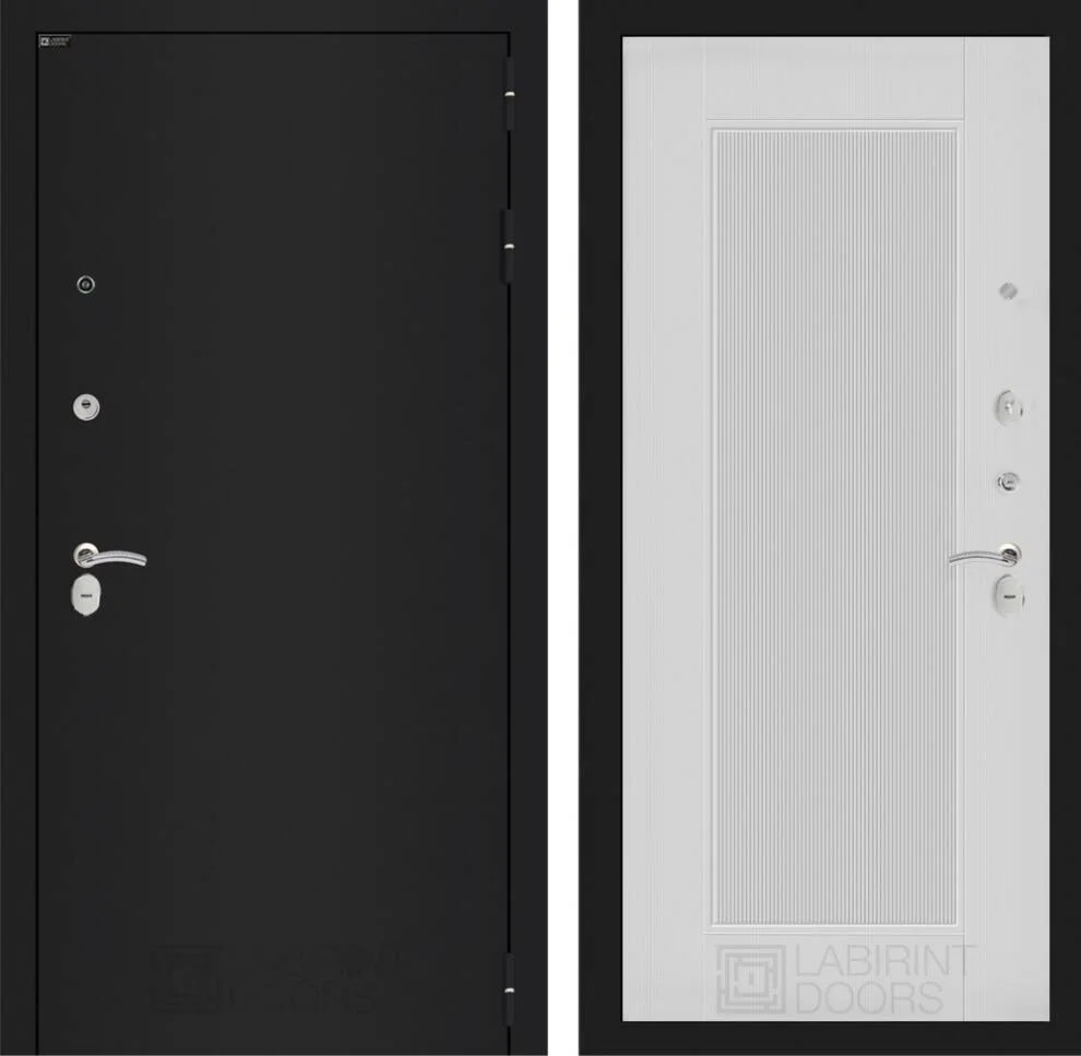 Входная дверь Классик шагрень черная 30 - Белый рельеф софт