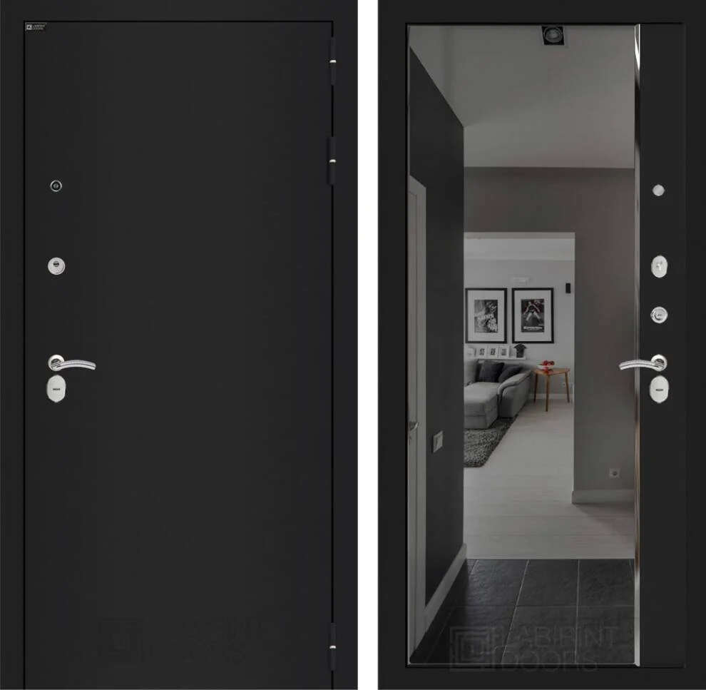 Купить входную дверь Классик шагрень черная с зеркалом Панорама на dverin.pro - выбрать надежного партнера в защите вашего жилья.