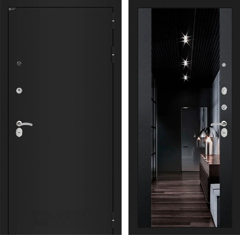 Купить входную дверь Классик шагрень черная с зеркалом - означает получить полный комплект для установки без дополнительных покупок.
