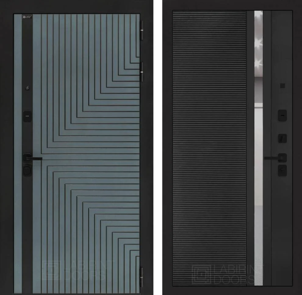 Входная дверь Кредор 31 - Черный кварц, зеркальная вставка с тонировкой