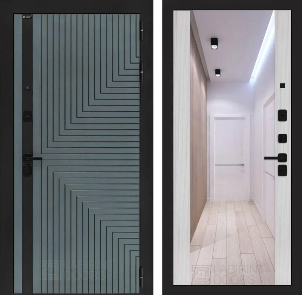 Дизайн входной двери Кредор с Зеркалом Максимум отличается современностью и функциональностью.