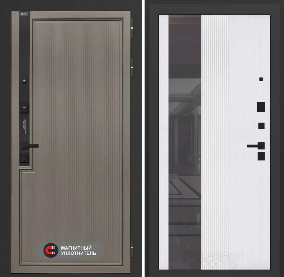Входная дверь Лаб 1 Про с Зеркалом 32 тонированным в цвете Белый рельеф софт — это идеальное сочетание надежности, комфорта и элегантного дизайна для вашего дома.