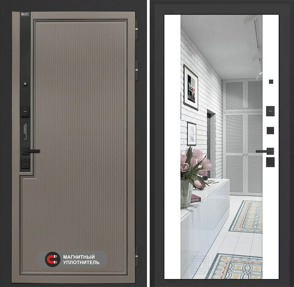 Входная дверь Лаб 1 Про с зеркалом Максимум в цвете Белый софт – это идеальное решение для тех, кто ценит надежность, функциональность и современный дизайн.