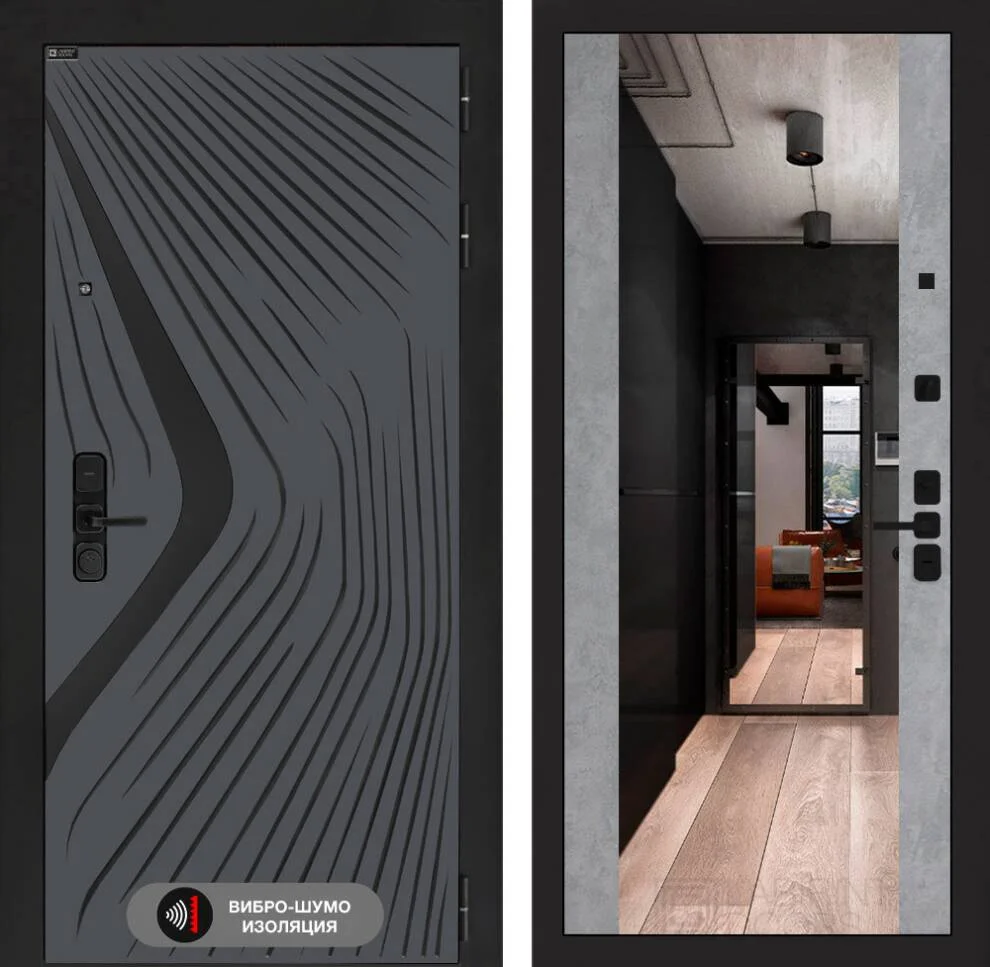 Входная дверь Леолаб с Зеркалом Максимум - Бетон светлый - это премиальное решение для защиты вашего дома, сочетающее максимальную безопасность с изысканным дизайном.