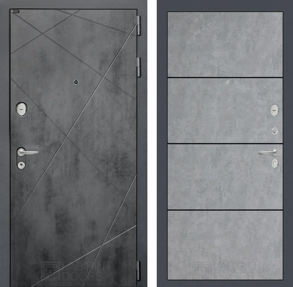 Входная дверь Лофт 25 - Бетон светлый, черный молдинг