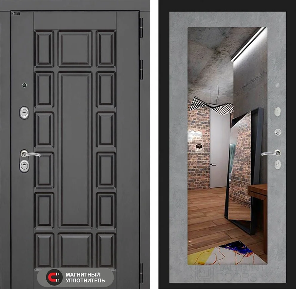 Входная дверь Нью-Йорк с Зеркалом 18 - Бетон светлый