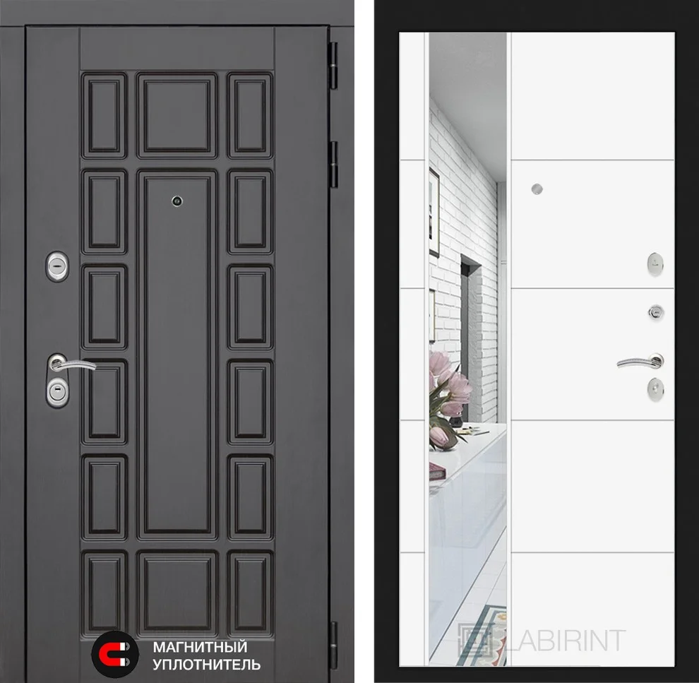 Входная дверь Нью-Йорк с Зеркалом 19 в цвете Белый софт — это современное решение для защиты вашего дома с элегантным дизайном.