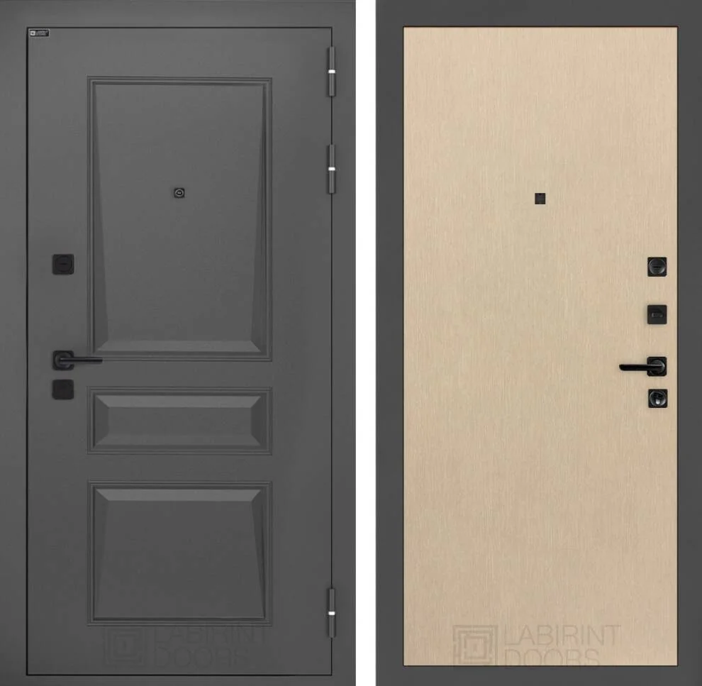 Стильная металлическая отделка методом давления с покраской Муар серый 7024 придает двери современный и элегантный вид.