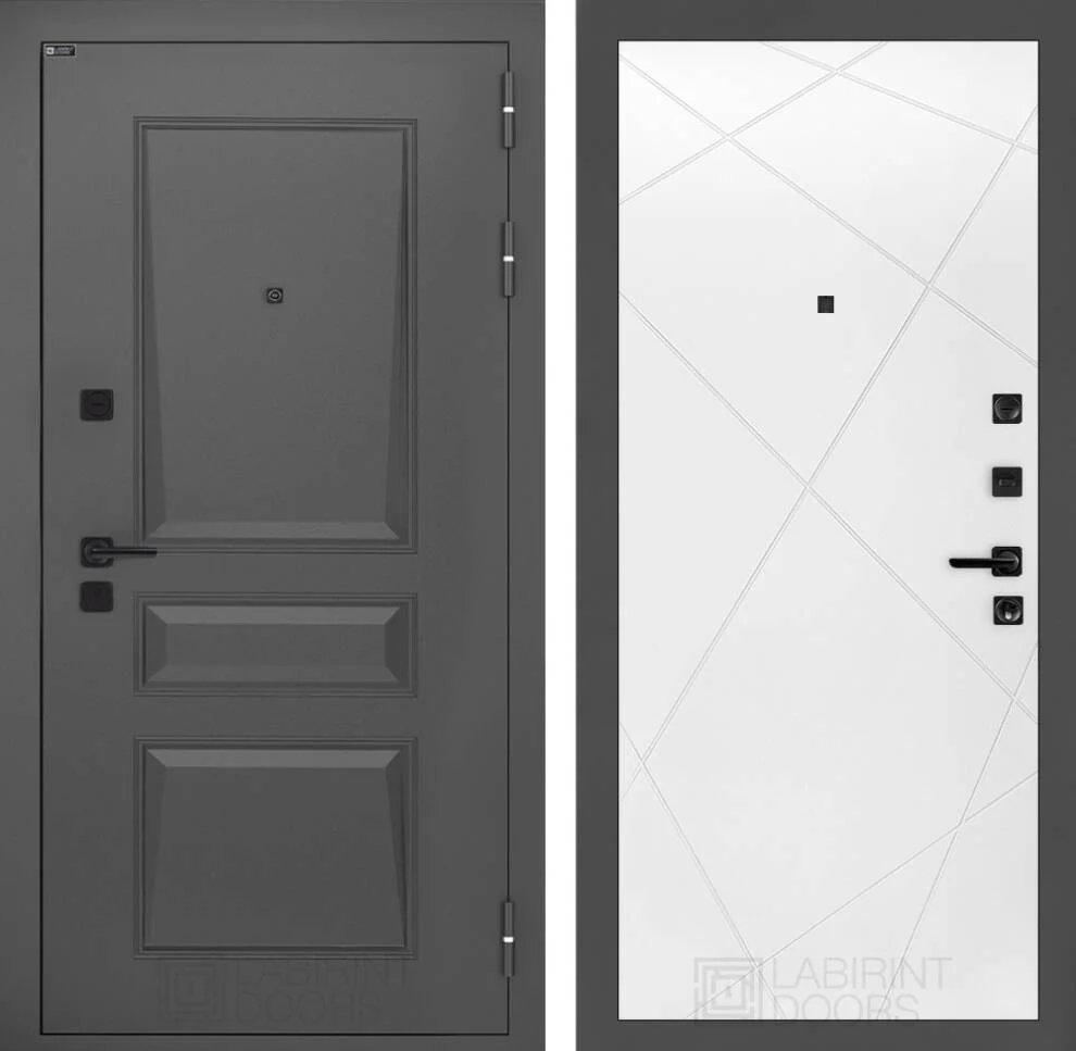 Внешний вид двери впечатляет: металлическая отделка методом давления с покраской в цвет муар серый 7024 (матовый) создает современный и стильный облик.