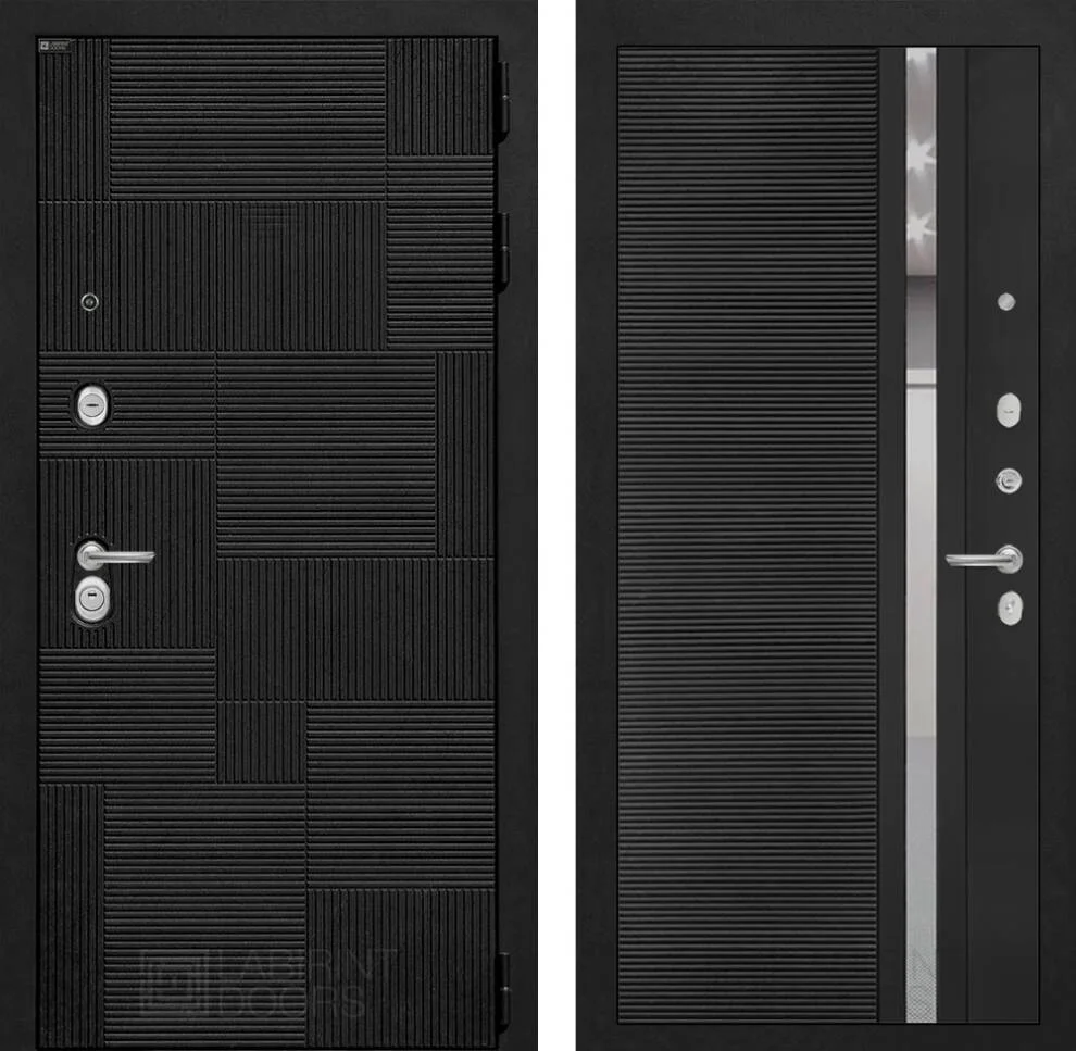 Внешний вид входной двери отражает современный стиль: чёрный лофт МДФ панель 10 мм с металлическим наличником и муар чёрной покраской создают эффектный контраст.