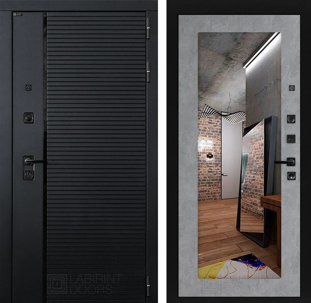 Входная дверь Пиано с зеркалом 18 - Бетон светлый
