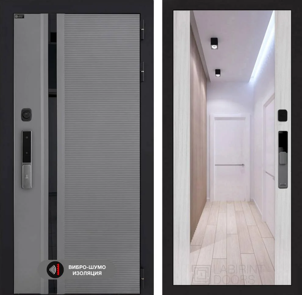 Входная дверь Пиано Смарт 2.0 с зеркалом Максимум - Сандал белый