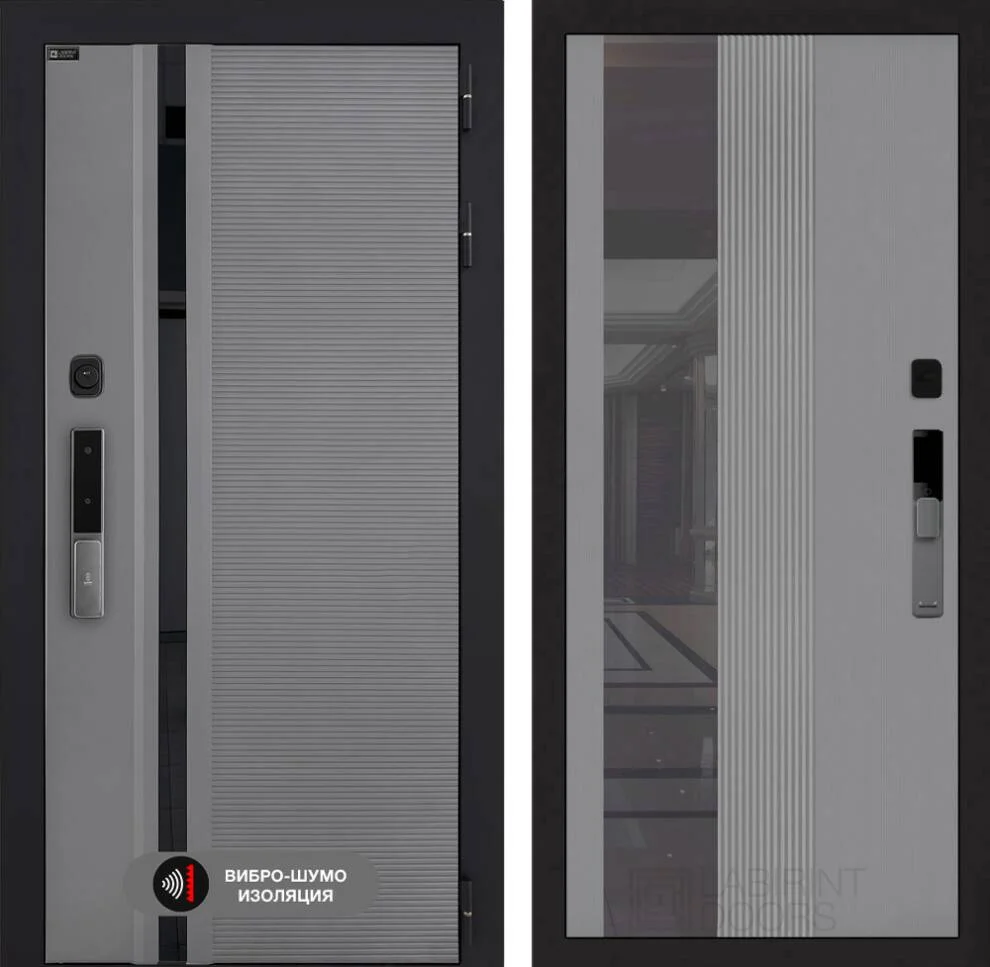 Входная дверь Пиано Смарт 2.0 с зеркалом (тонированным) 32 - Серый рельеф софт представляет собой инновационное решение для современного дома, сочетающее высочайшую безопасность и элегантный дизайн.
