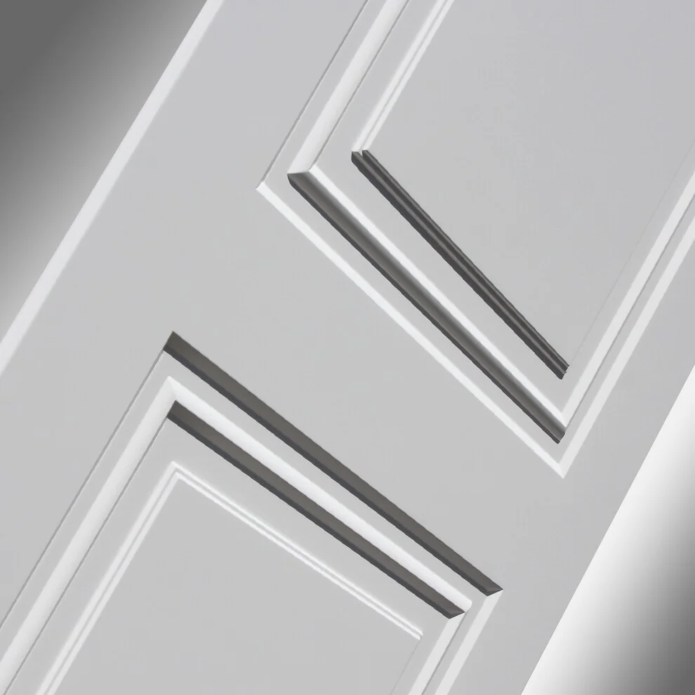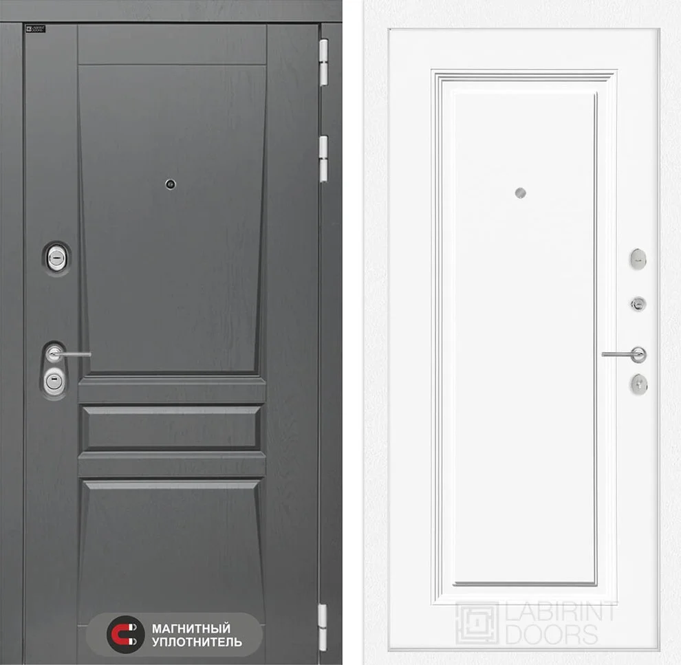 Эстетика и практичность: снаружи дверь имеет элегантную декоративную МДФ панель 16 мм цвета "Альберо Грей" с наличником.