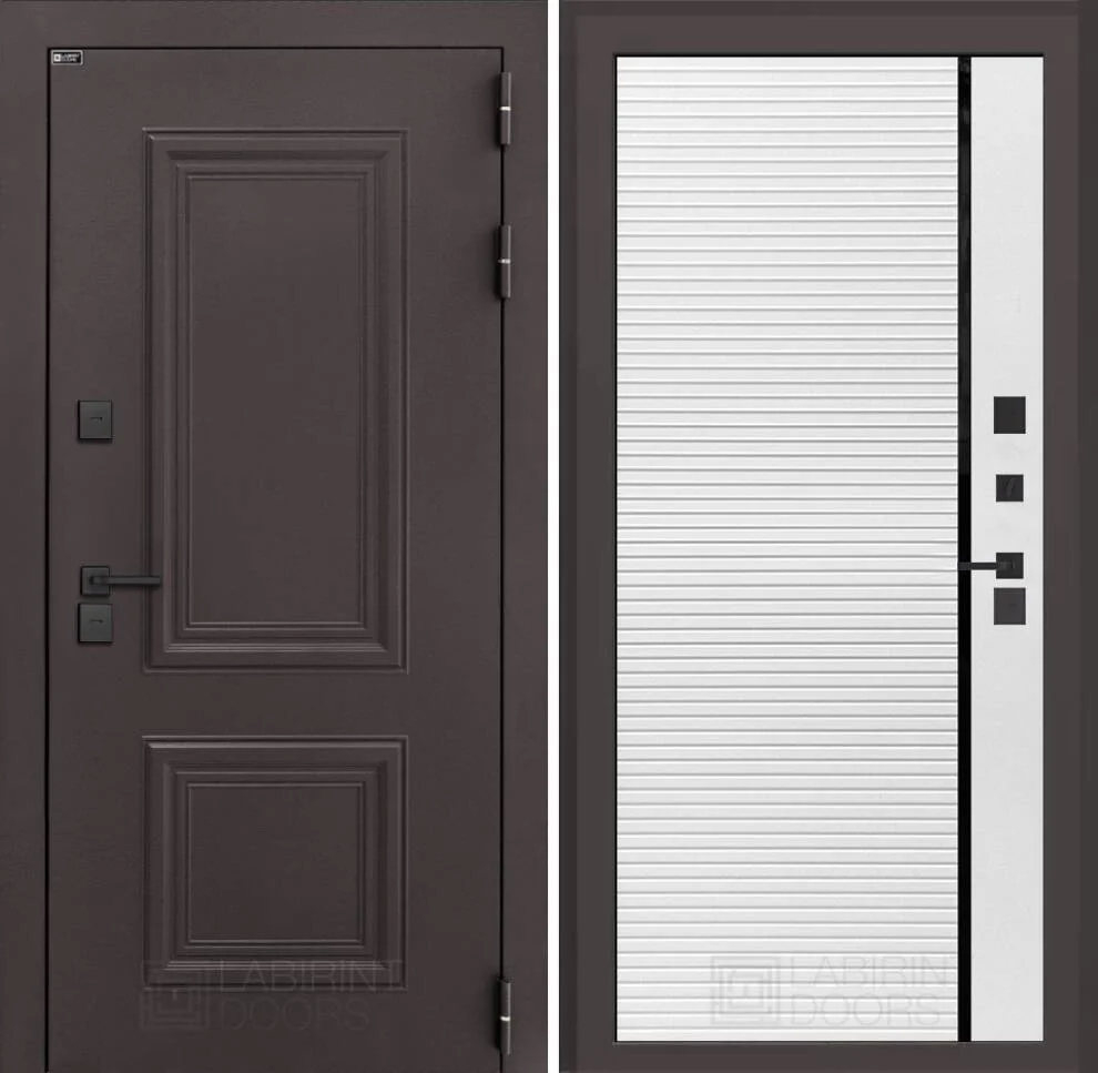 Декоративная МДФ панель 10 мм и увеличенный металлический наличник 100 мм придают двери завершенный облик.