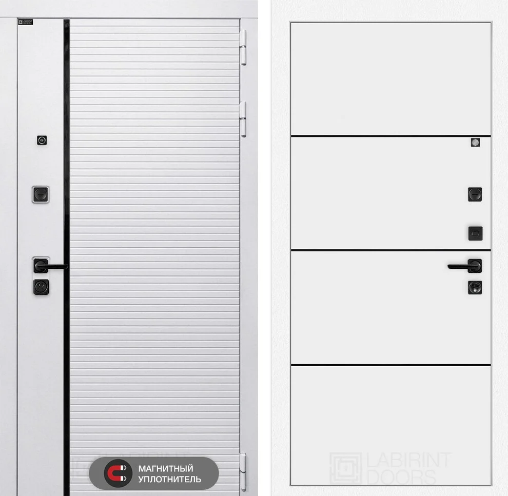 Входная дверь Роял 25 в элегантном дизайне «Белый софт» с черным молдингом – это идеальное сочетание современного стиля и максимальной безопасности для вашего дома.