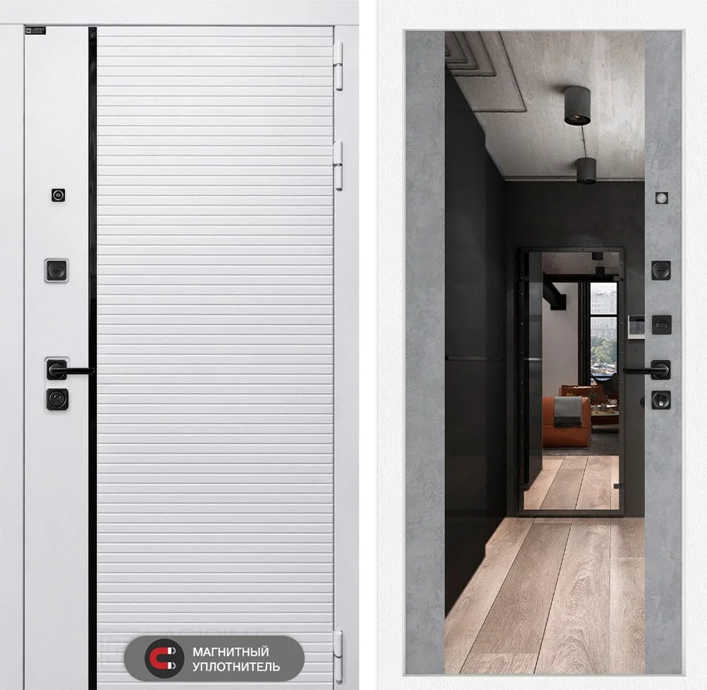 Входная дверь Роял с Зеркалом Максимум в цвете Бетон светлый – это идеальное сочетание современного дизайна, надежности и функциональности.