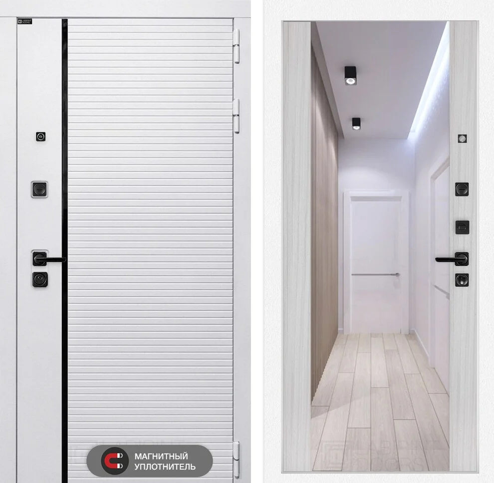 Входная дверь Роял с Зеркалом Максимум - Сандал белый