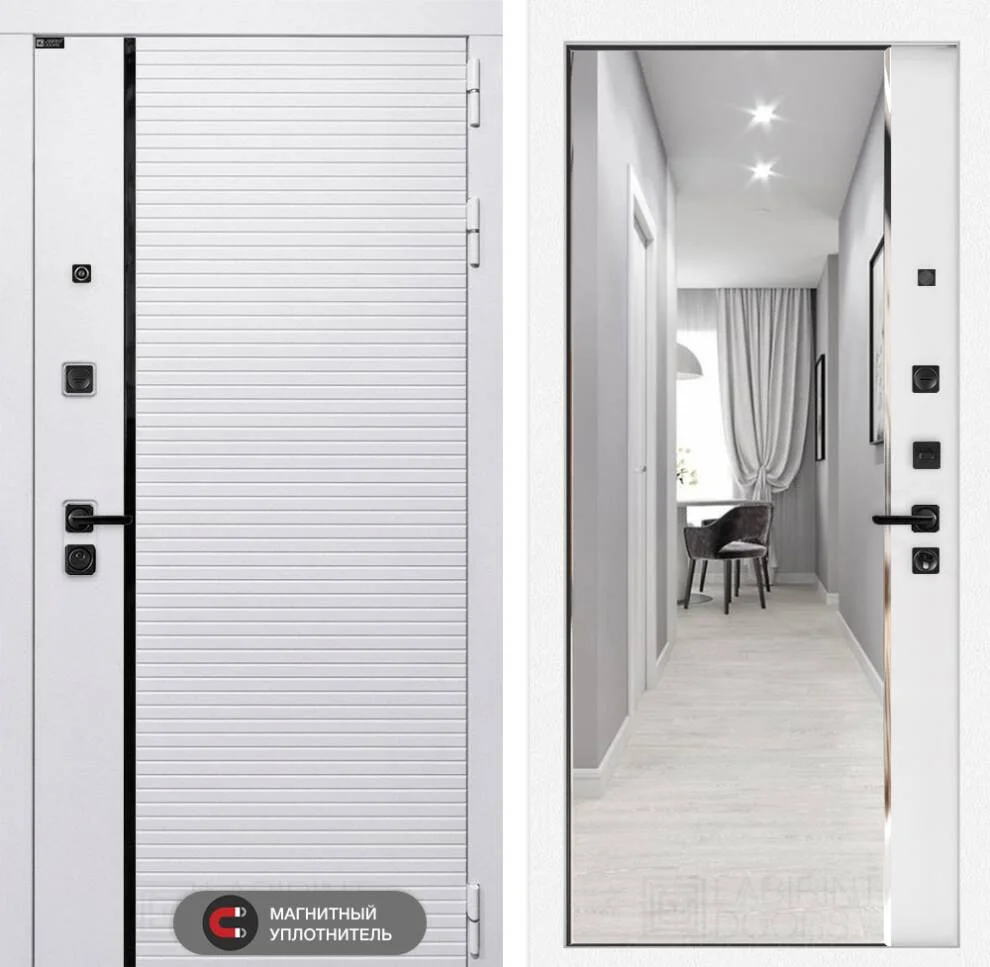 Входная дверь Роял с зеркалом Панорама в цвете Белый софт – это идеальное сочетание стиля, безопасности и надежности для вашего дома.