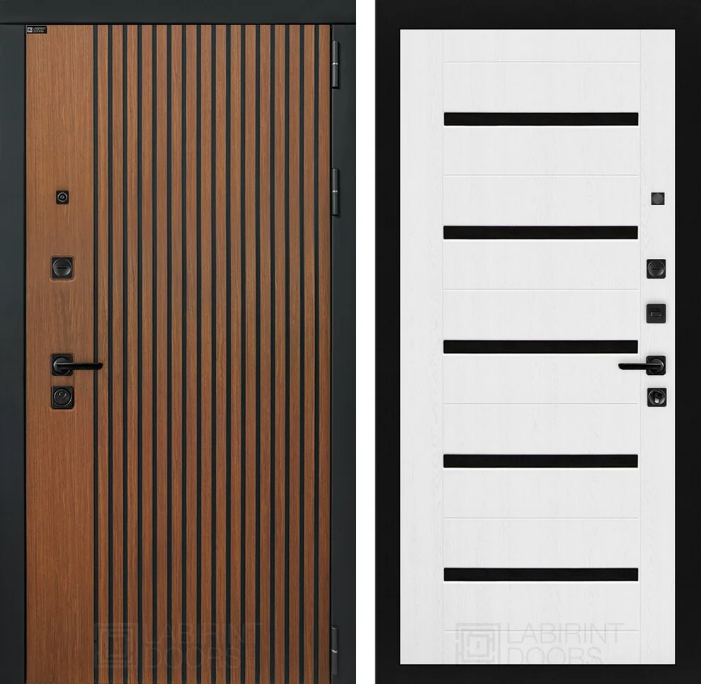 Внутри – элегантная МДФ панель "Белое дерево" с вставкой из черного стекла, создающей современный контраст.