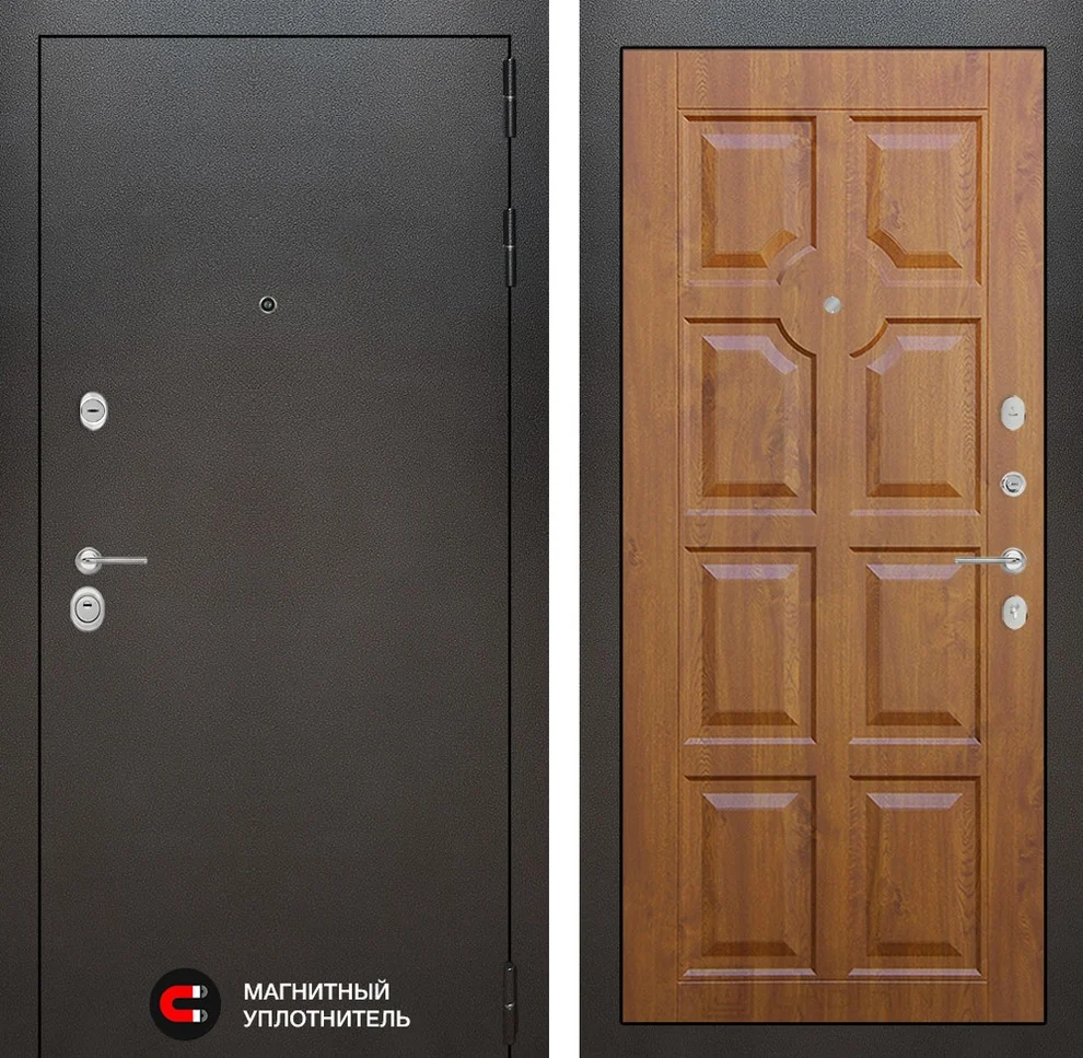 Внутренняя декоративная МДФ панель толщиной 10 мм с покрытием VINORIT цвета "Золотой дуб" придает дверям благородный внешний вид.
