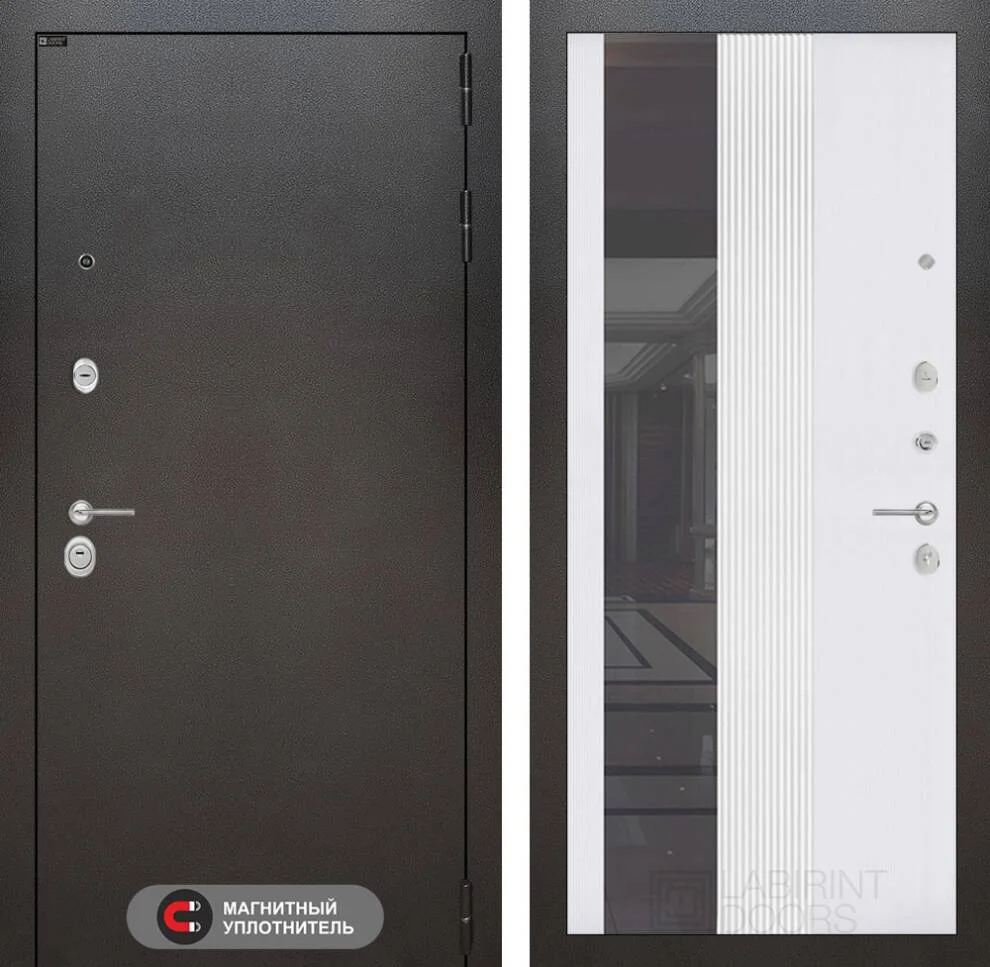 Входная дверь Сильвер с Зеркалом 32 тонированным в цвете Белый рельеф софт - это современное решение для защиты вашего дома с элегантным дизайном и надежной безопасностью.