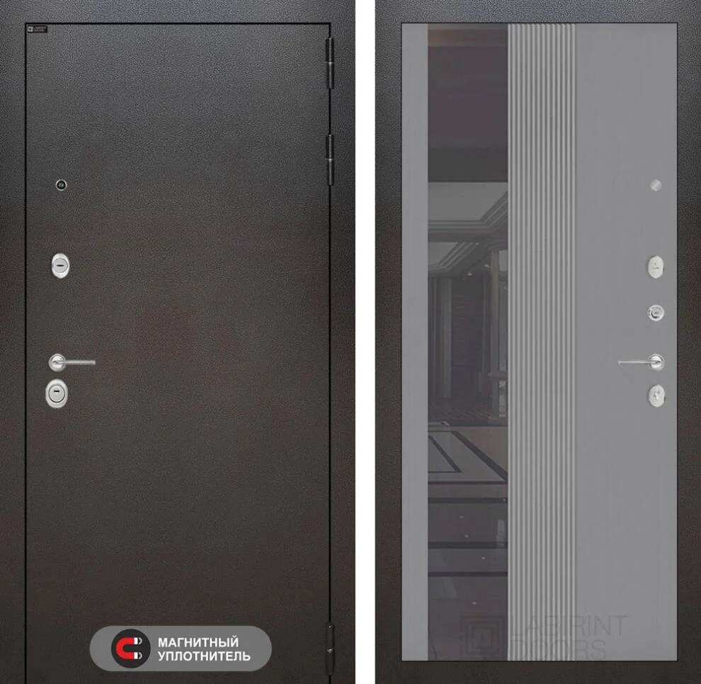 Входная дверь Сильвер с Зеркалом 32 тонированным в цвете Серый рельеф софт — премиальное решение для защиты вашего дома.