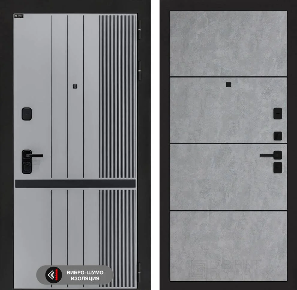 Входная дверь Скайлаб 25 - Бетон светлый, черный молдинг