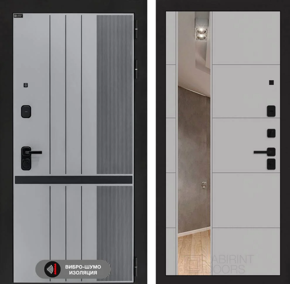 Входная дверь Скайлаб с зеркалом 19 Грей софт — премиальное решение для защиты вашего дома с элегантным дизайном и максимальной безопасностью.