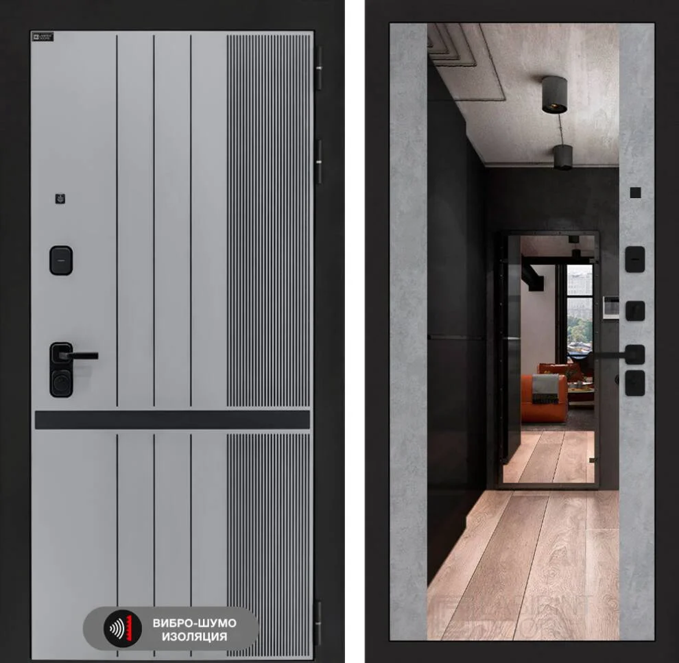 Входная дверь Скайлаб с Зеркалом Максимум в цвете Бетон светлый – это идеальное сочетание стиля, безопасности и комфорта для вашего дома.