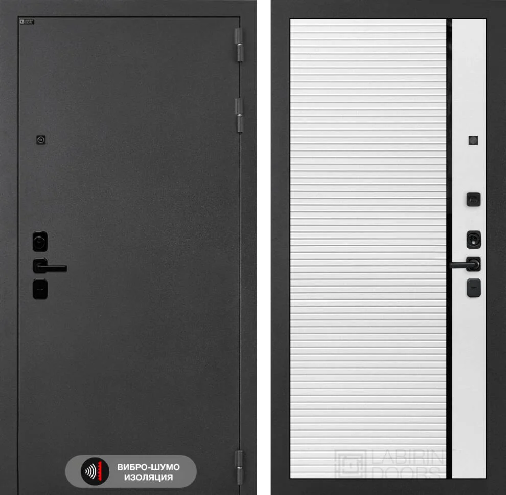 Входная дверь Соналаб 22 в цвете белый софт с черной вставкой – это идеальное решение для тех, кто ценит безопасность, тепло и стиль.