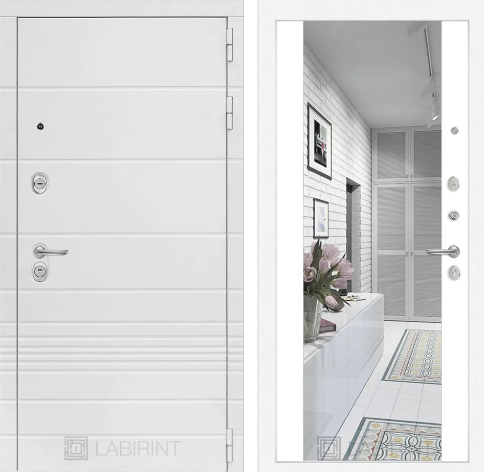 Входная дверь Трендо с Зеркалом Максимум в белом софте - это идеальное решение для современного дома, сочетающее надежность, стиль и функциональность.