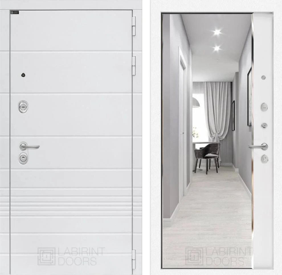 Входная дверь Трендо с зеркалом Панорама в белом софте – это идеальное сочетание стиля, безопасности и функциональности для вашего дома.