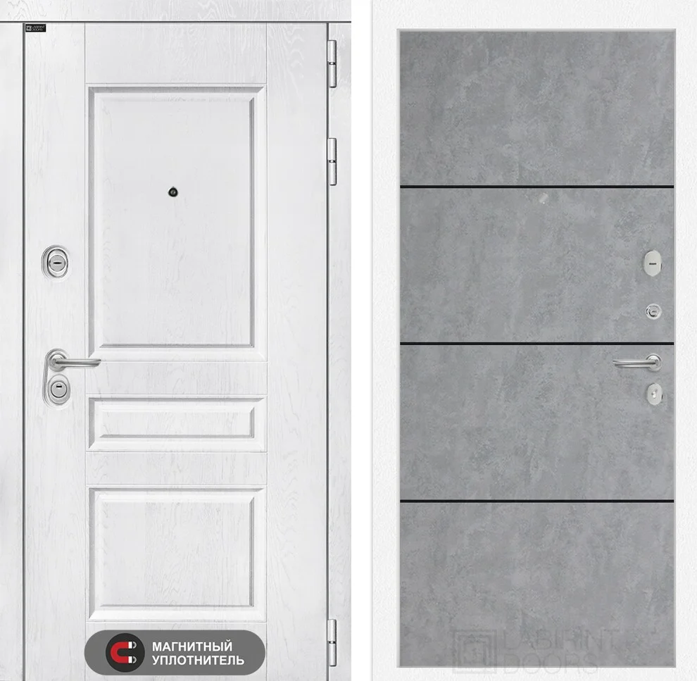 Входная дверь Версаль 25 - Бетон светлый, черный молдинг