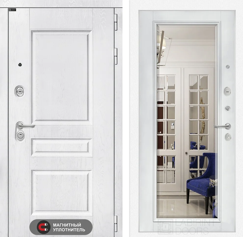 Входная дверь Версаль с Зеркалом Фацет - Белый софт
