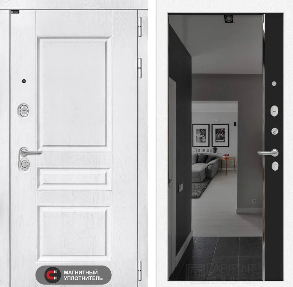 Эта стильная входная дверь идеально подходит для современных интерьеров благодаря элегантной отделке внутри с декоративным зеркалом Панорама фацет с тонировкой.